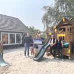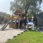 Seit dem zum Jahresbeginn gestarteten Verkauf wurden mittlerweile über 2600 Euro erlöst. Nun übergab Ute de Buhr für die Kinder Spielhäuser mit Klettermöglichkeiten, Schaukeln und ein im Boden eingelassenes Trampolin. Die Spielgeräte wurden auf einer Sandfläche aufgebaut und beim Sommerfest Ende Juli begeistert von den Kindern angenommen.