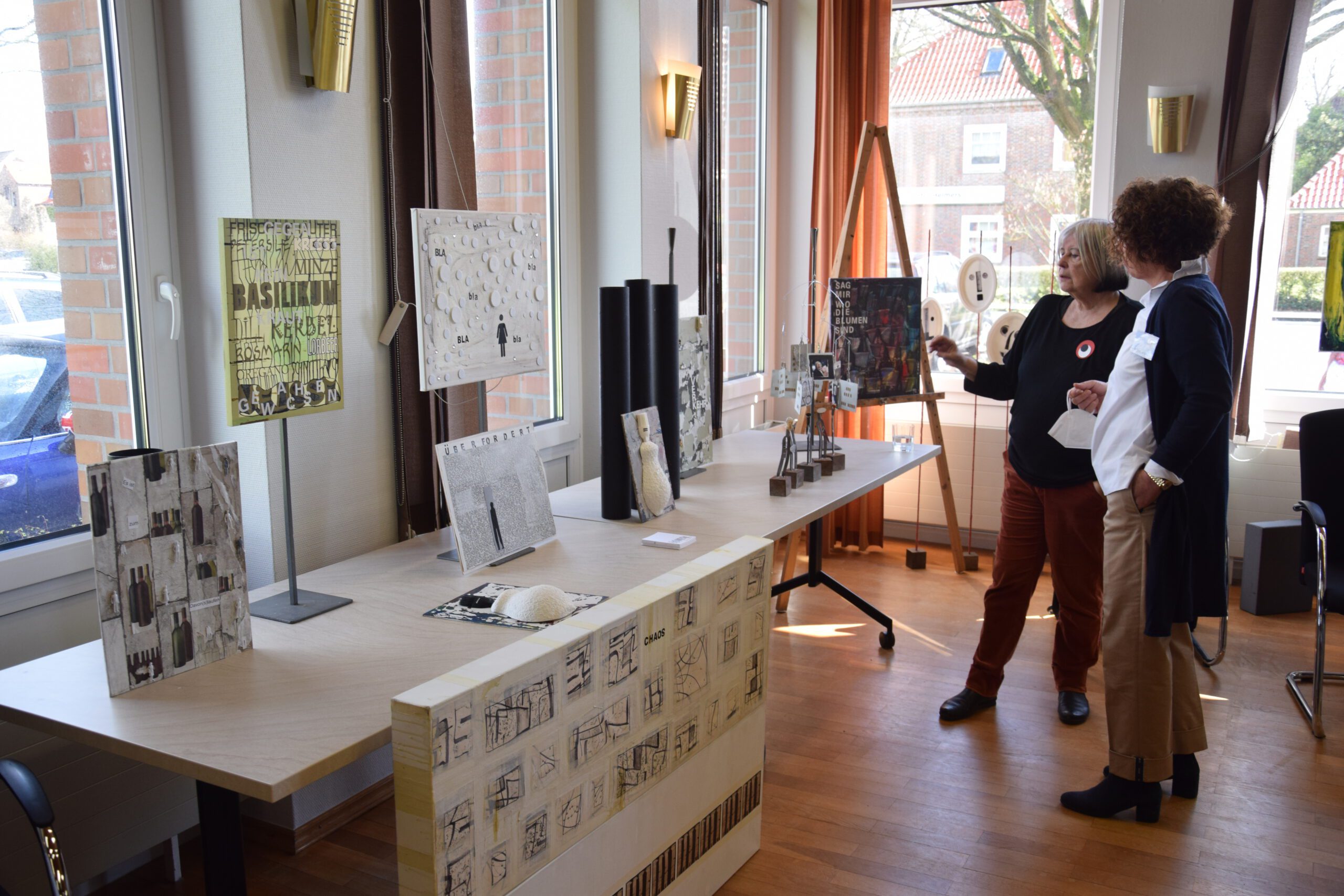 Zusammen mit dem Vorstandsmitglied Marion Jetses eröffnete die 2. stellv. Bürgermeisterin von Uplengen, Christine Holtz, die Ausstellung. Beide äußerten sich begeistert von der großen Kreativität der Mitglieder. Die Bandbreite des künstlerischen Schaffens reichte von Malerei und Fotografie bis zu Hand- und Holzarbeiten.