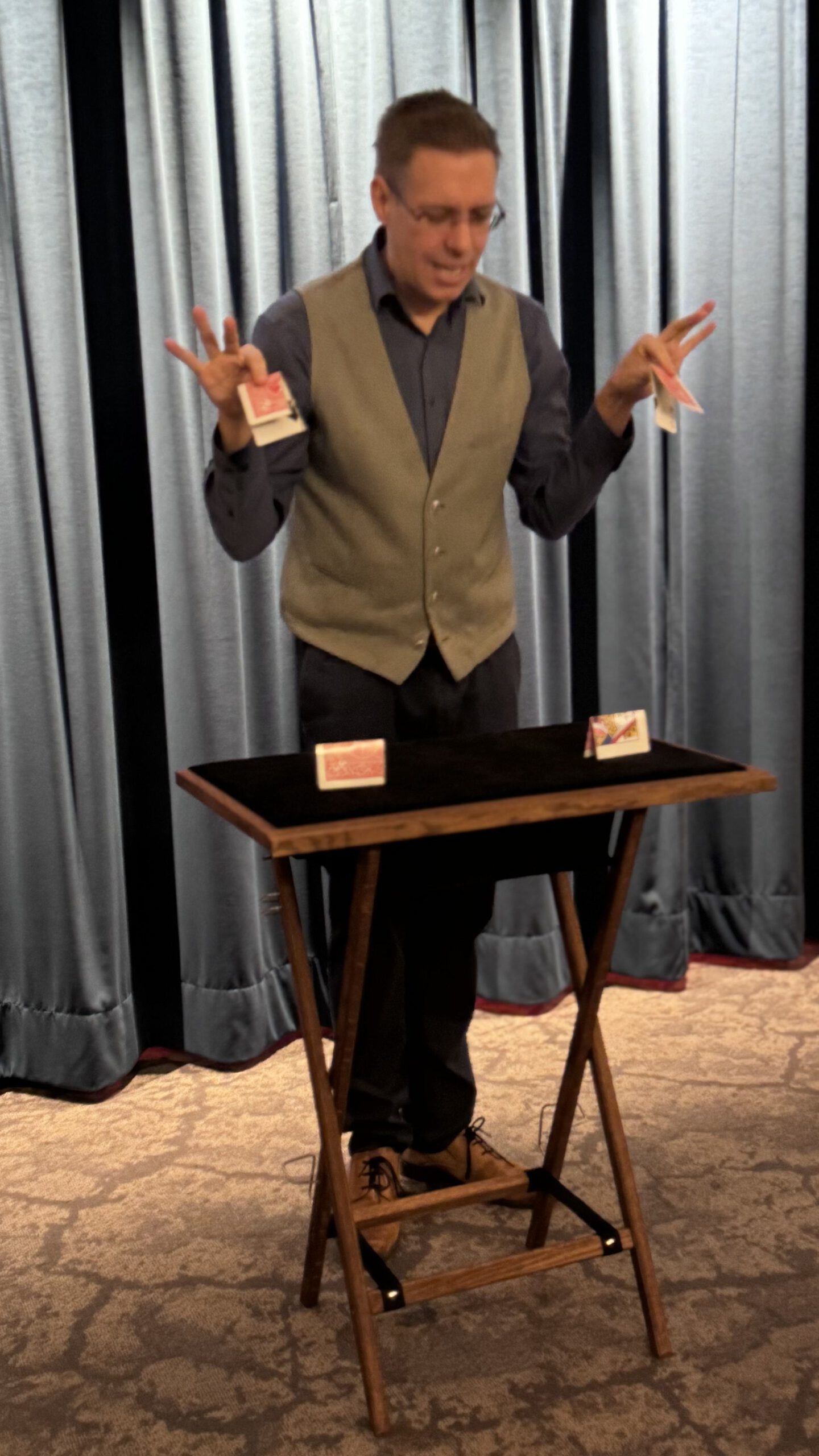 Staunen und Faszination bei den Besucher und Besucherinnen prägten diesen Abend. Dem Zauberkünstler Andreas Reichert gelang es gleich zu Beginn, sein Publikum mit auf seine magische Reise auf den Dachboden seiner Kindheit zu nehmen. Durch die Beteiligung seiner Gäste an den Zauberkünsten gestaltete der Künstler einen ausgesprochen zauberhaften Abend. Die Gäste wurden mit einem ausgefallenen Büffet empfangen, in der Pause wurde ein Dessertbüffet serviert und beim Verlassen des Theaters erwarteten die Zuschauer Süßigkeiten aus den 80er Jahren. Für die Besucher und Besucherinnen wird dieser Abend sowohl kulinarisch als auch zaubermagisch noch lange nachhallen… einfach zauberhaft!