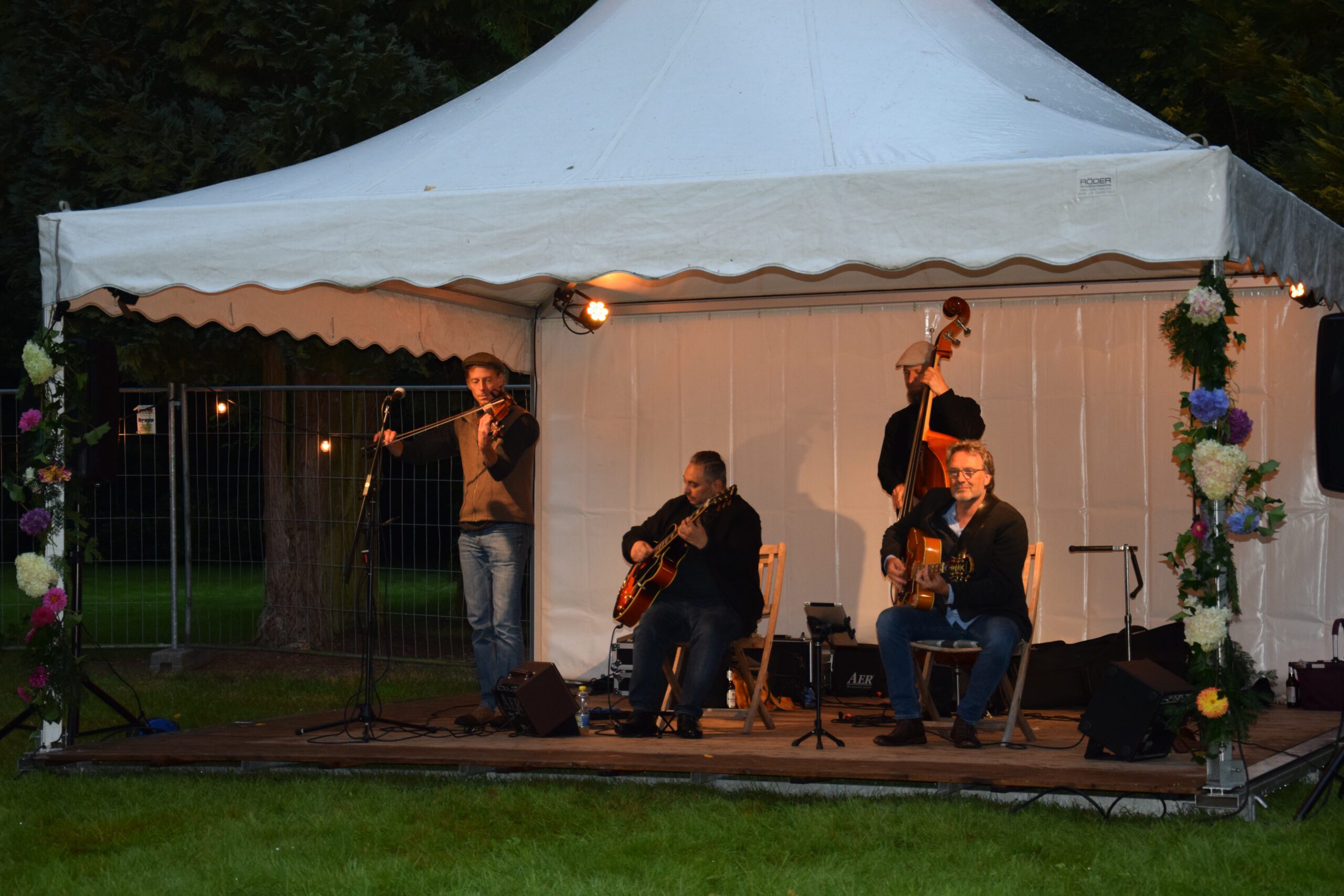 Das vom Uplengener Kulturring e.V. organisierte Konzert der Gruppe „Chapeau Manouche“ bot den Gästen ein besonderes, musikalisches Erlebnis. Zwei Gitarren, eine Geige und ein Kontrabass: Eine eher ungewöhnliche Kombination für Jazzmusik, die die vier Oldenburger Musiker an diesem Abend dem Publikum präsentierten. Trotz relativ schlechten Wetters genossen die knapp 50 Gäste den unterhaltsamen Abend und die besondere Atmosphäre im illuminierten Höstpark.