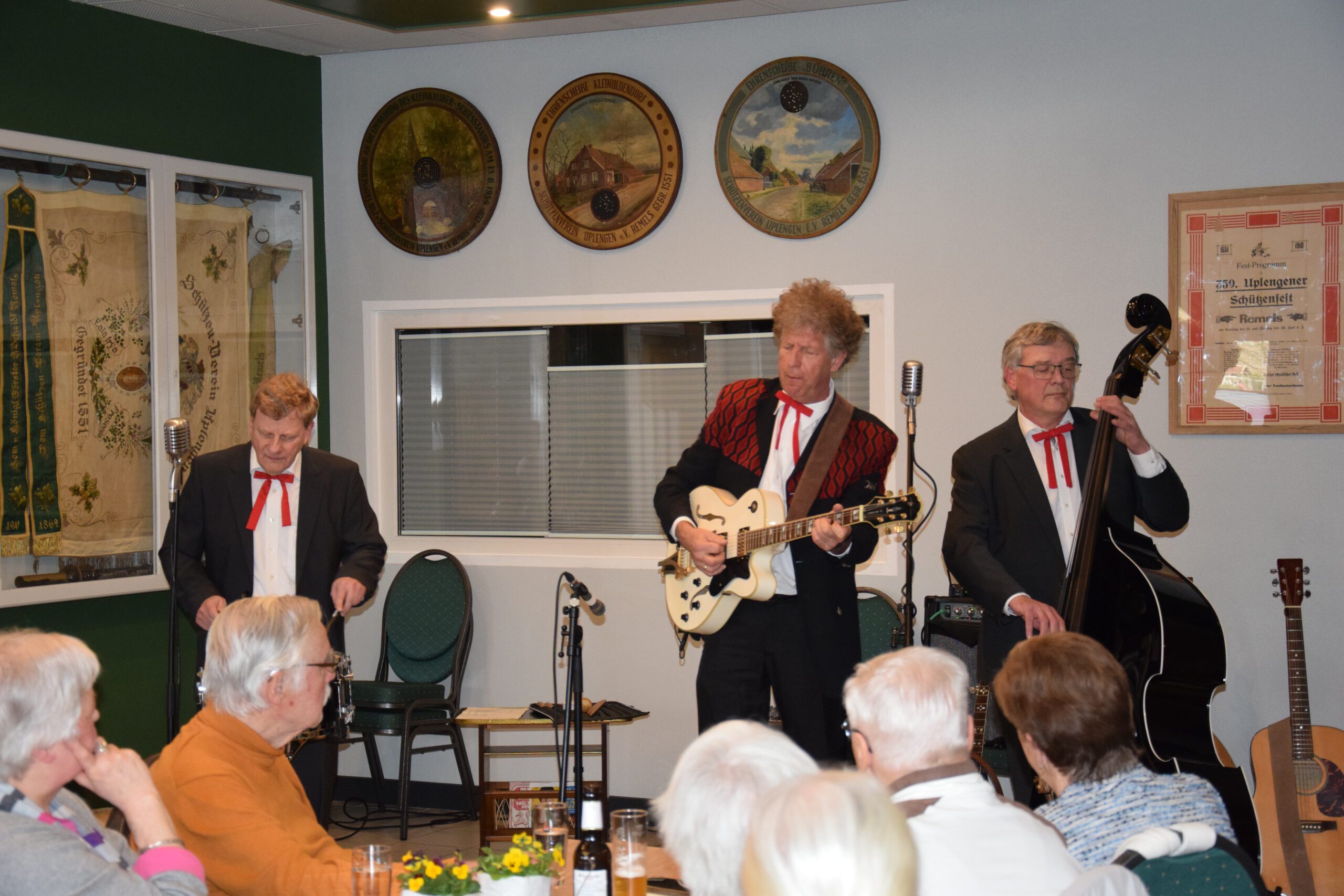 Sievert Ahrend und seine Band TRAIN 45 aus Leer warten auf mit einem Auszug aus ihrer legendären Rockabilly- und Musikkabarett-Show. Mit strahlender Bühnenpräsenz sorgen die drei beim Publikum garantiert für absolute Bestlaune! Wir freuen uns auf einen unterhaltsamen Nachmittag und starten mit Tee/Kaffee und Kuchen um 15.00 Uhr im Schützenhaus. Das Konzert beginnt um 16.00 Uhr.